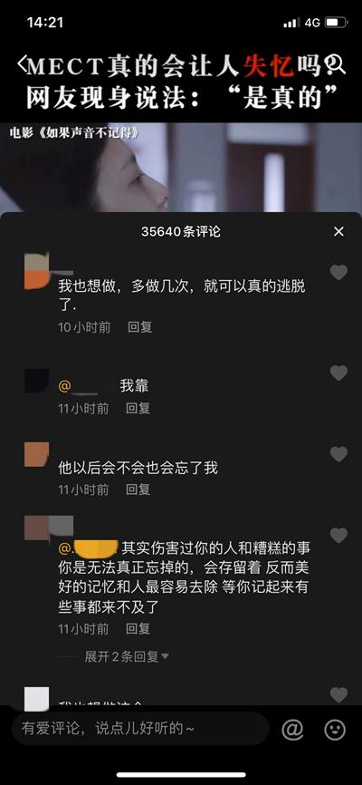 一些网友在一条视频下评论,希望通过做MECT忘记一些事情。图片来自抖音截图