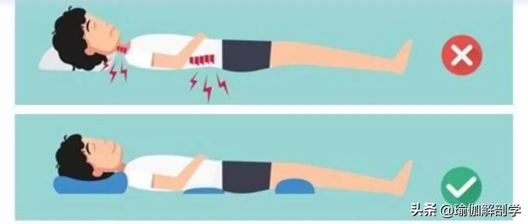 建议:在腰椎、膝盖窝下方垫一个薄一点的枕头。
